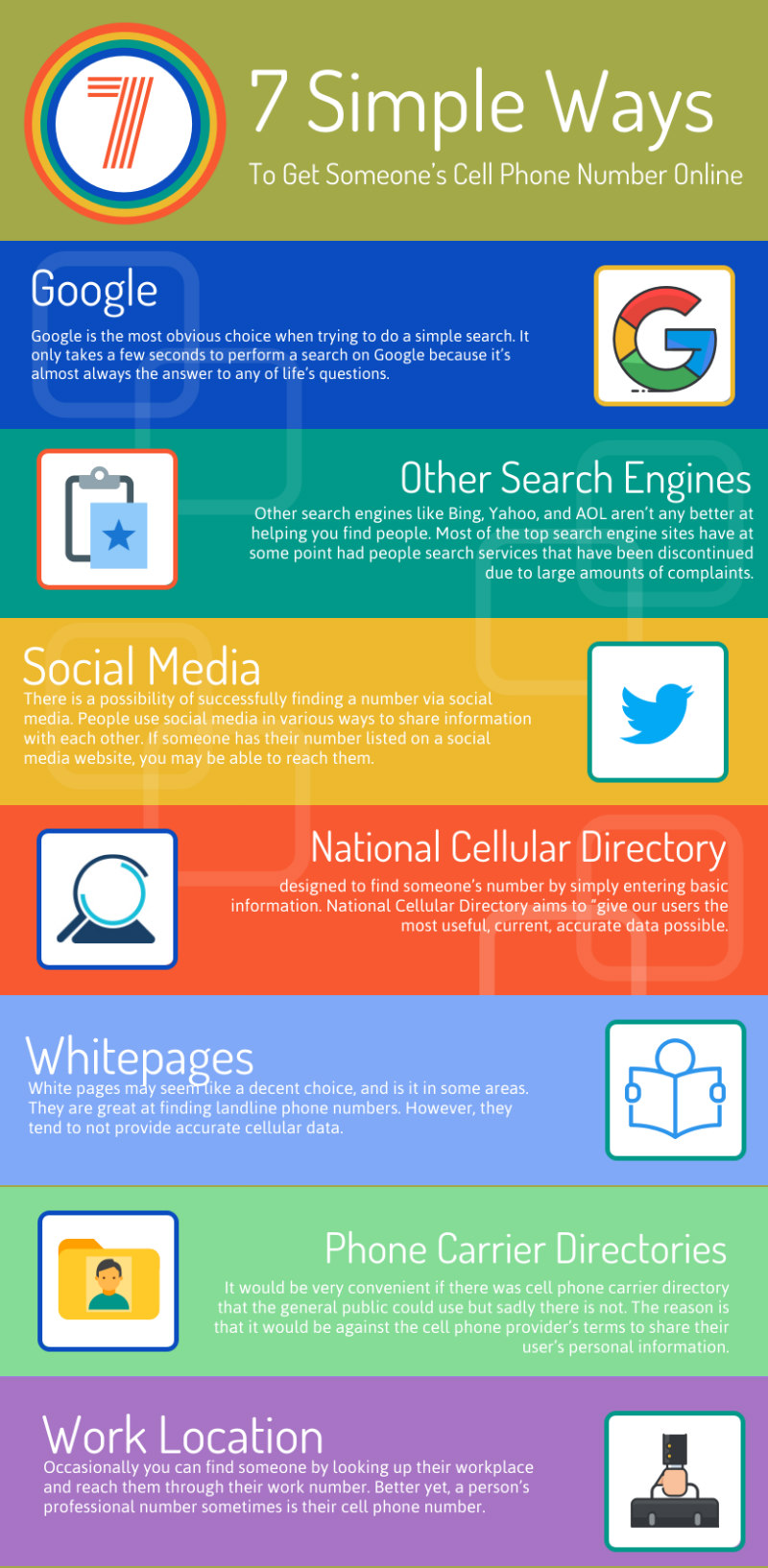 Here are seven possible ways in which to get someone’s cell phone number online.